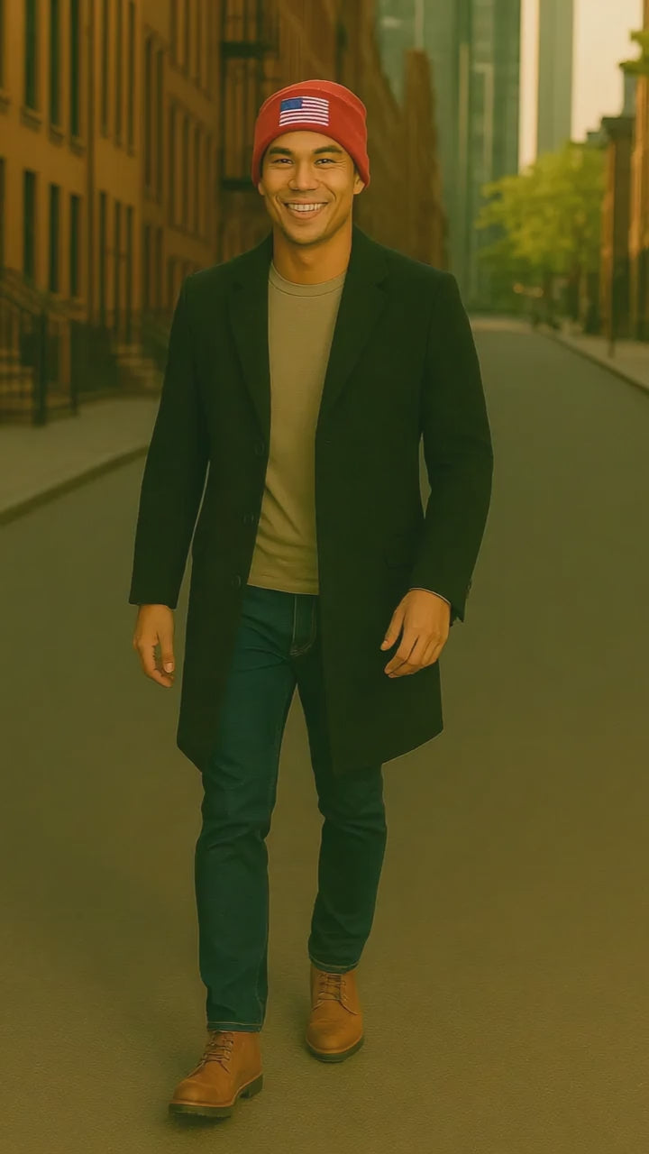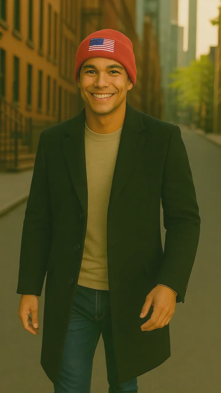 Embroidered Knit Beanie with USA Flag, Winter Hat, Gift for Patriots, Stylish Beanie for Outdoor Activities, Unisex Apparel, Cozy Headwear