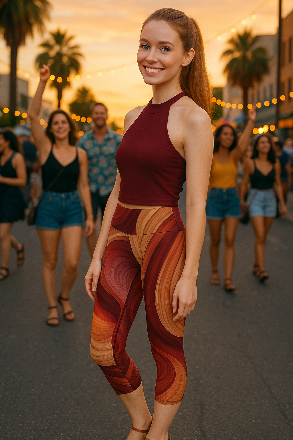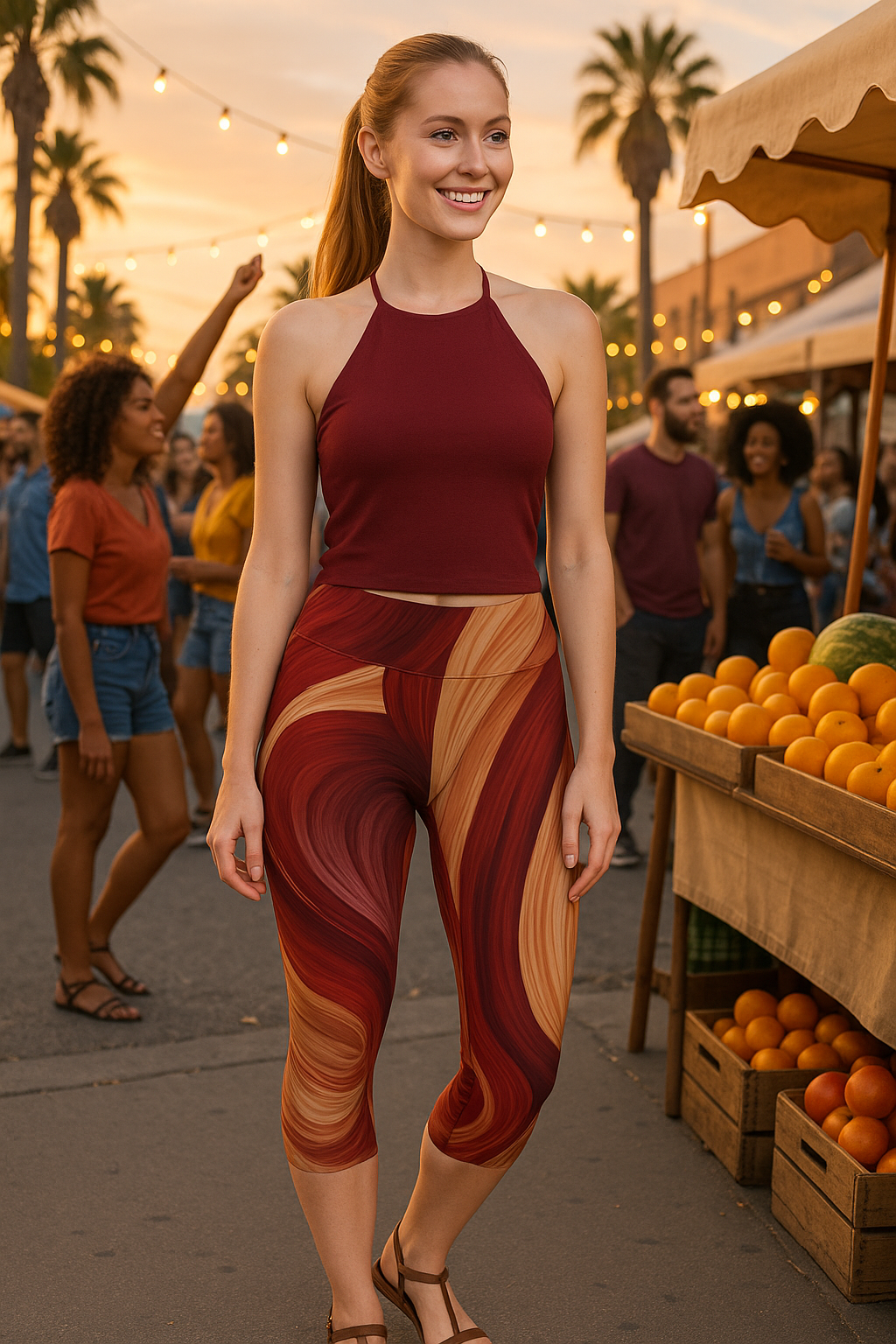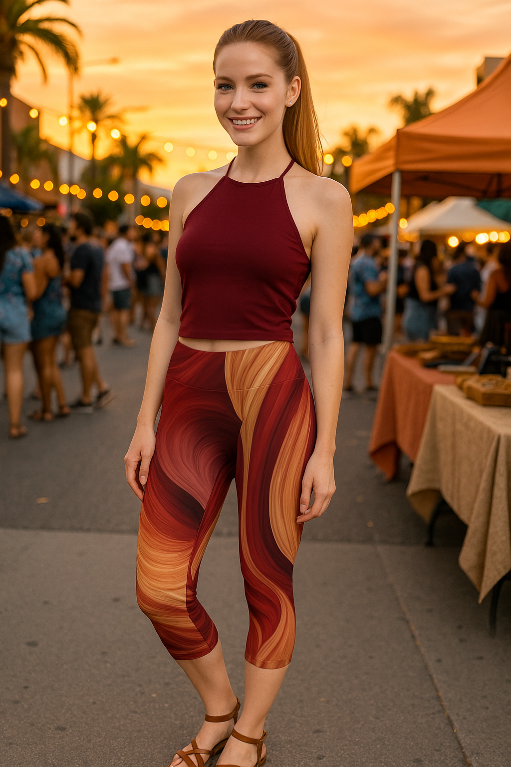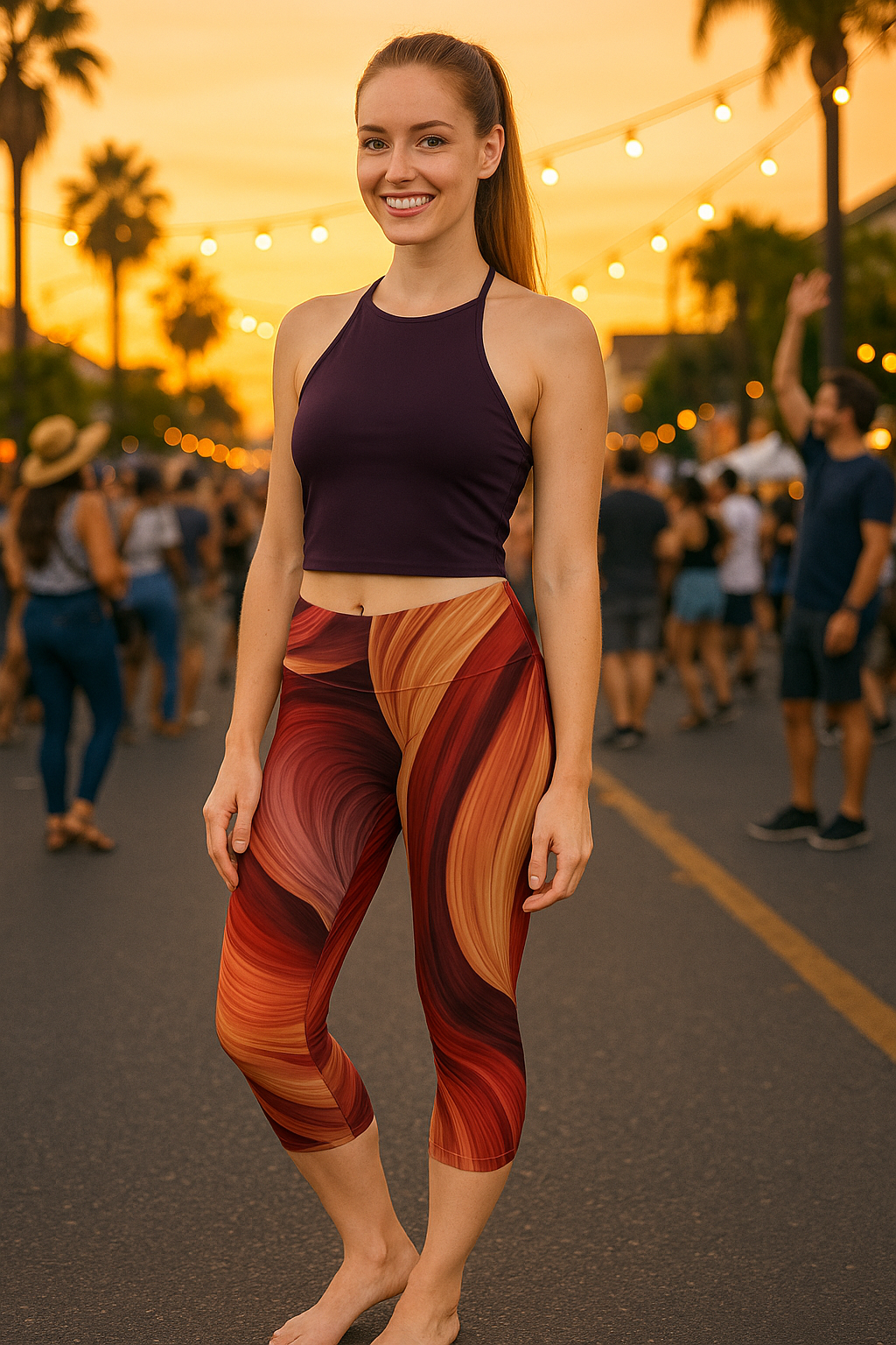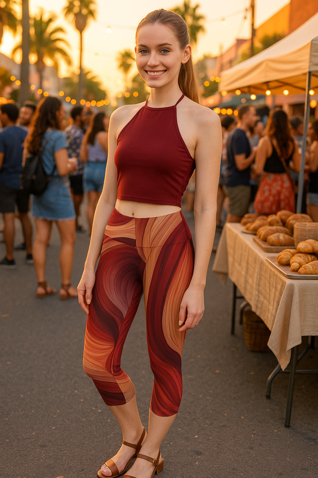 Flowing Earth Tones Women's Capri Leggings, Yoga Wear, Athleisure, Casual Outfits, Summer Fashion, Unique Gift Idea