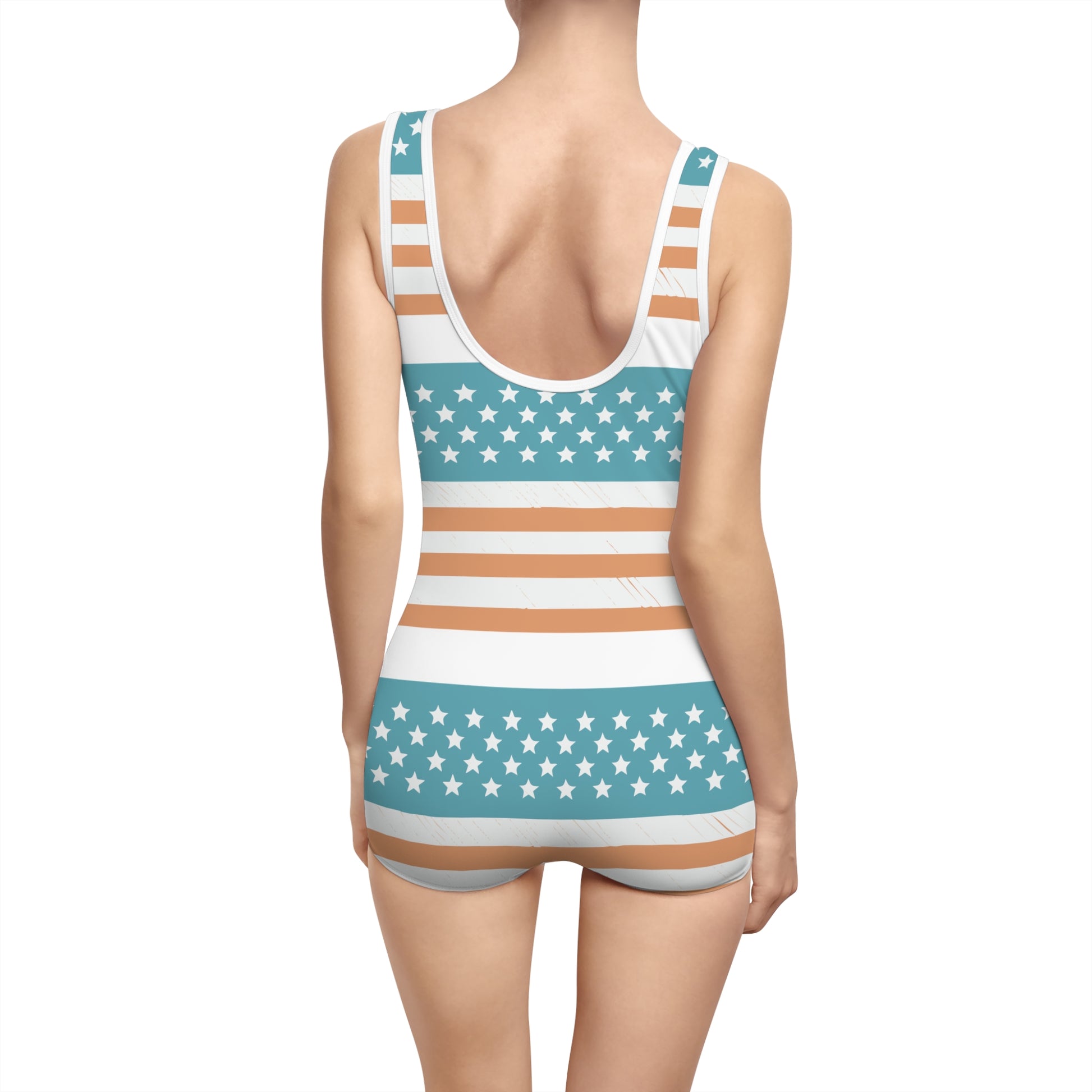Retro American Flag Women's Swimsuit - Perfect for Summer Fun