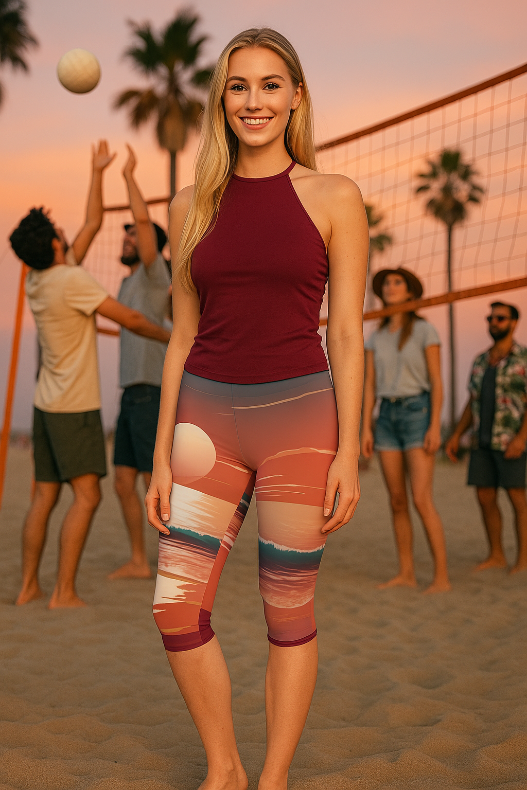 Sunset Beach Women's Capri Leggings, Yoga Pants, Summer Fashion, Beachwear, Activewear, Vacation Outfit