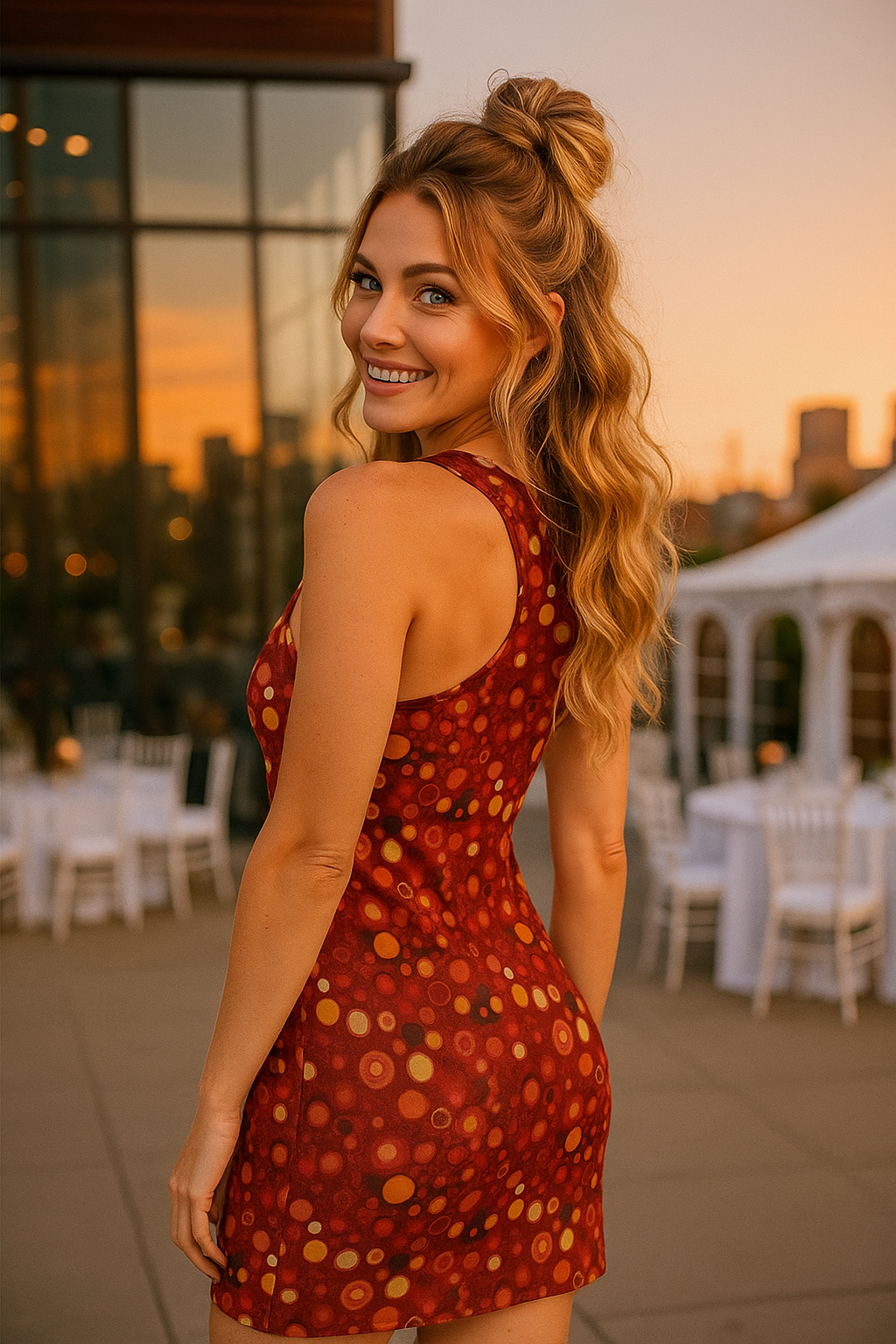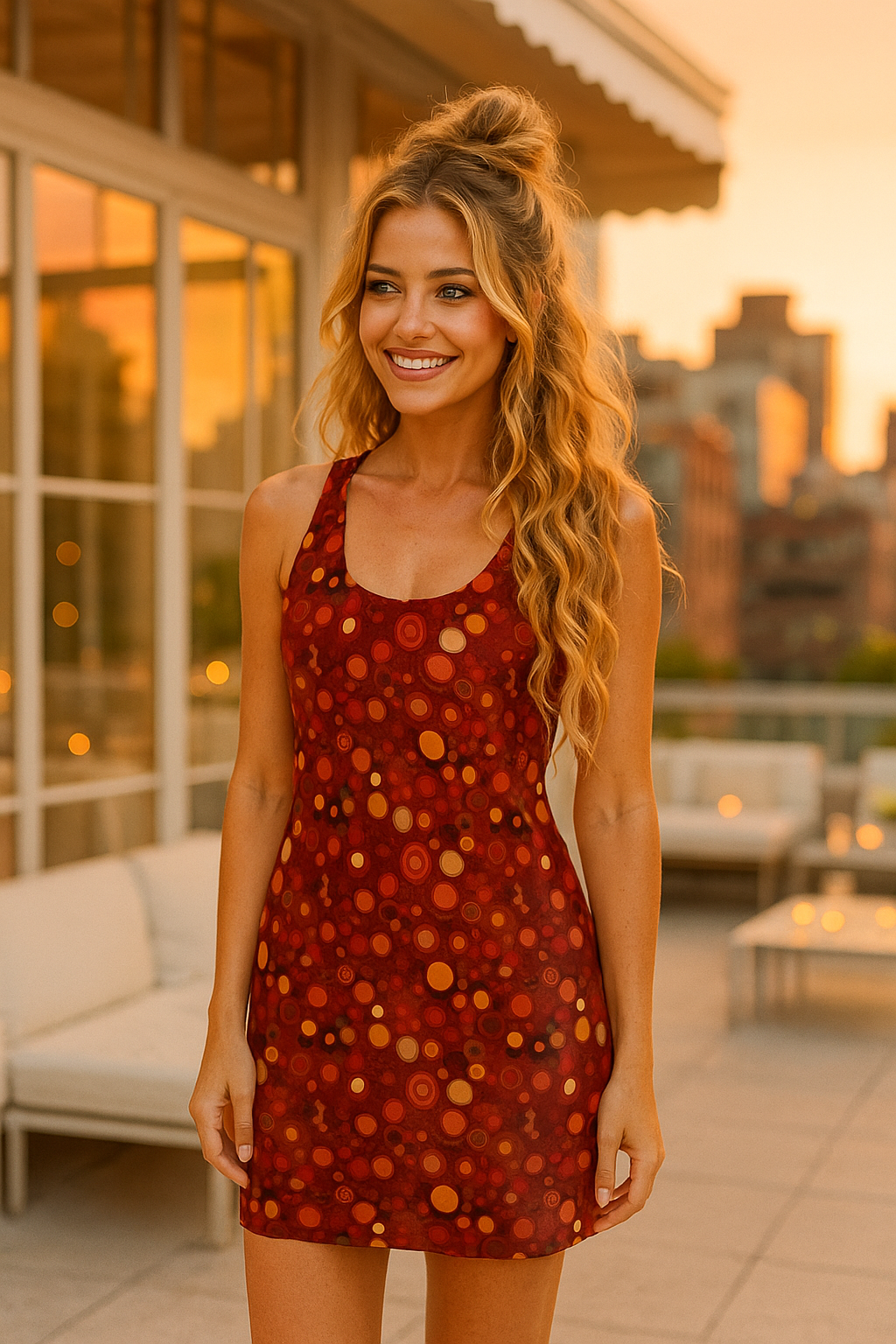 Vibrant Circle Pattern Racerback Dress for Women, Casual Summer Dress, Beachwear, Party Outfit, Outdoor Activities, Gift for Her