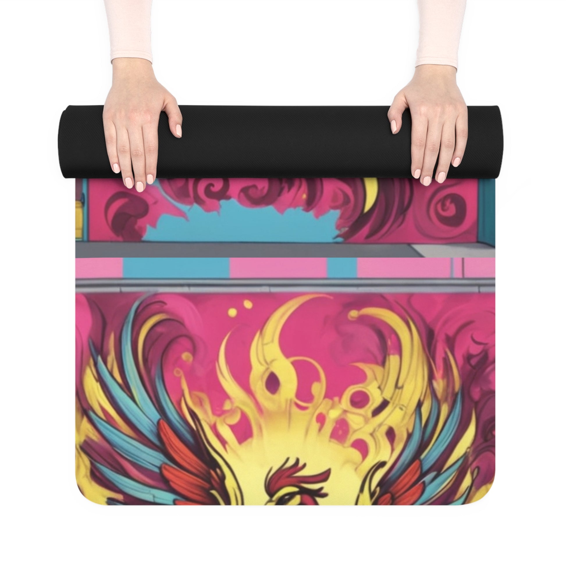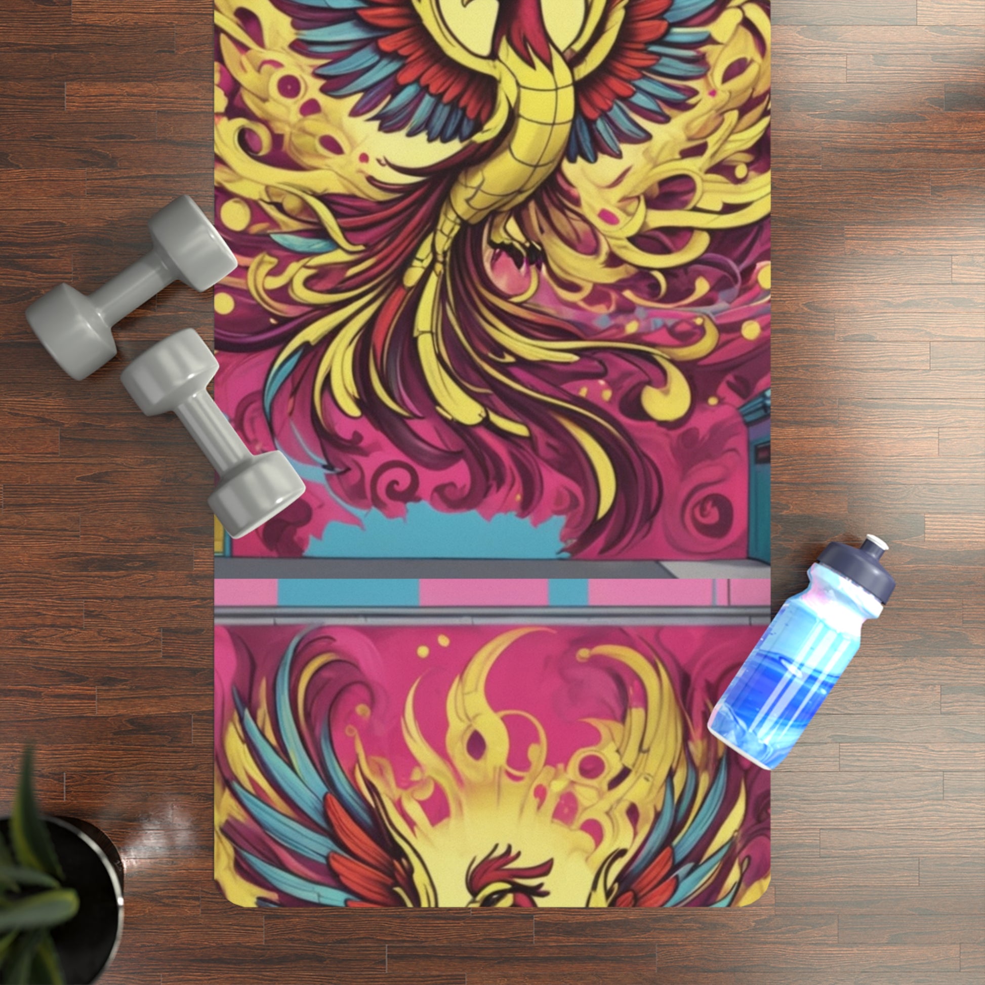Vibrant Phoenix Yoga Mat - Eco-Friendly Rubber, Exercise Mat, Fitness Gift, Yoga Accessories, Meditation Essentials